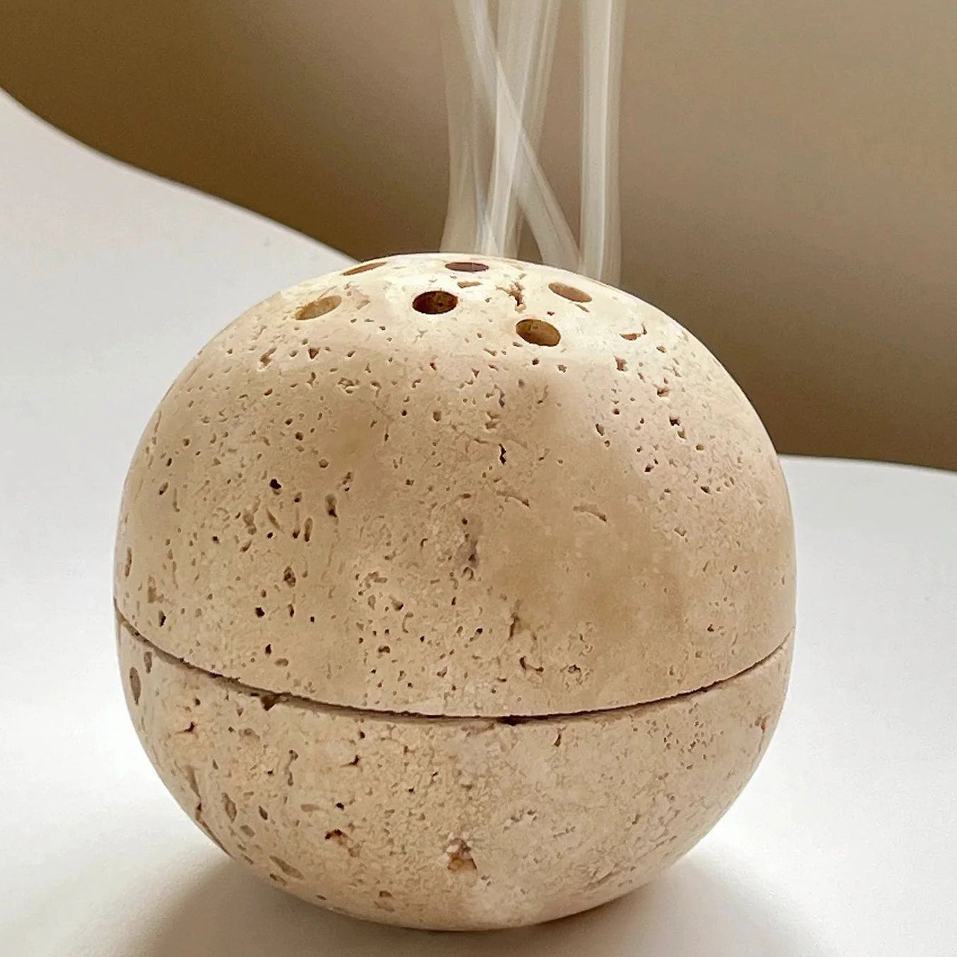 Découvrez le Bol de Sérénité, un brûleur d'encens qui transcende sa fonction pour devenir une œuvre d'art méditative. Sculpté dans le Marbre Travertin le plus fin, ce diffuseur sphérique apporte une touche de luxe brut et intemporel à vos rituels de bien-être.